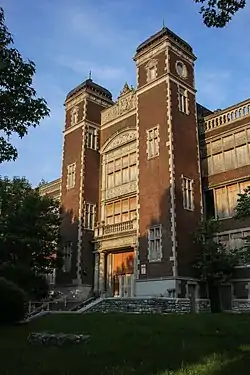 The new Central High School building opened on September 1, 1893; designed by Furlong and Brown in the Victorian style, the facility cost $365,000, while land acquisition costs were $34,000. The building featured four stories, a curved facade, and a tower housing the school stairwells, and it had a capacity of 1,200 students.[10] A notable event in Central's history occurred when, in 1922, William J. S. Bryan retired after having taught for 50 years in the school.[11] During this period, several other high schools opened in St. Louis to alleviate overcrowding at Central, including McKinley High School and Yeatman High School in 1904, followed by Soldan High School in 1909, Cleveland High School in 1915, Roosevelt High School in 1925 and Beaumont High School in 1926.[12]
