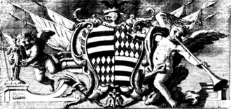 The Ceva family is a descendant branch of the Aleramici dynasty founded by William of Montferrat in the 10th century named for his son Aleramo. By the early 12th century, the family had vast landholdings in Piedmont and northern Liguria, including the town of Ceva and its surrounding area. On the death of Bonifacio del Vasto c. 1125, his son Anselmo received the newly created Marquisate of Ceva. Anselmo's son, Guglielmo Anselmo, was the first member of the family to use Ceva as a surname. By 1389, one of Guglielmo Anselmo's descendants, Gherardo Ceva, established himself in Genoa and became the progenitor of the Ceva branch that eventually added Grimaldi to its surname. Another branch established itself in France in the early 16th century and acquired the Barony of Fléchères. Their surname became Sève.[2][3] The branch that remained associated with the Marquisate of Ceva and based in Piedmont produced a number of Roman Catholic prelates, including several bishops and a cardinal.[4]