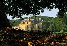 On either side of the château are heavily wooded hills that shelter the valley in which the château lies, creating a microclimate slightly warmer than the surrounding areas.