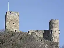 Perched on the summit of a rocky outcrop, it was over the centuries a true strategic site for the protection of the valley and also a place of refuge for the population. Its construction dates from the 10th century by the Count of Bigorre, Centule III,[2] Its origin, however, seems older because the Arabs would have occupied it.[4] In the 14th century, it was occupied by the Knights Hospitaller.[5] Then the English took possession until 1404, when Jean de Bourbon, the Count of Clermont,[6] helped by the inhabitants of the valley commanded by Aougé de Coufitte, drove them out and put an end to the English occupation of the valley.[4] The castle was then gradually abandoned.[2]