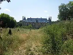 The château was then within the walled town. A French garden was on either side of the château, to the north and south. A channel was fed by the Bréon stream, with two geometrically arranged arms extending from the moat, of which the eastern branch was the longest and ran into a pool downstream from the farm of Sourdeau. A large fenced park crossed by wide avenues was located to the south. A long north-south perspective started from the walled town, passing by the château and its garden and through the park.