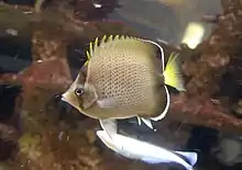 Chaetodon dolosus, the African butterflyfish, is a species of marine ray-finned fish, a butterflyfish of the family Chaetodontidae. It is found in the Western Indian Ocean, at depths from 40 to 200 metres (13–66 ft. It can grow up to 15 centimetres (6 in) in length.[2]