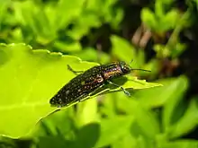 Chalcophora japonica, or ubatamamushi in Japanese (Japanese kanji: 姥玉虫, katakana: ウバタマムシ; lit. 'nanny jewel bug'), also known as the flat-headed wood-borer, is a metallic, bullet-shaped, woodboring beetle of the Buprestidae family. It is endemic to Japan.