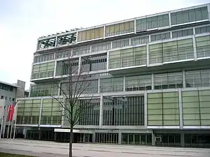 The Chamber of Commerce and Industry of Slovenia (Slovene: Gospodarska zbornica Slovenije; acronym: GZS) is a non-governmental organisation representing the interests of the Slovenian economy. It has the function of an informational body in the sense of economic and business services and protects the interests of its members in the field of economic policy. Its headquarters are located at 13 Dimitz Street (Dimičeva ulica) in the Bežigrad District of Ljubljana. The building was erected in 1999 according to plans by the Sadar + Vuga architecture bureau.