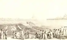 The assembly was planned to take place in May on the Champ de Mars, a stretch of open ground running from the military school at the École Militaire to the banks of the River Seine.[4] The site had a long association with public assemblies; new laws had been promulgated there since the time of the early French monarchs and, in 1790 during the Fête de la Fédération, Louis XVI had sworn to upload the post-revolutionary constitution.[5] The Champ de Mars also had a long association with Napoleon; a festival was held there in 1793 to celebrate the young Captain Bonaparte's victory at the Siege of Toulon and Napoleon had distributed imperial eagles, the standards of his regiments, to the troops there on the day after his coronation as emperor.[6] Napoleon announced the assembly on 30 April and the members of the electoral college (representatives of the arondissements and departments) were called to meet at Paris.[7] The ceremony was to have taken place in May, hence the name (Mai is French for May), but was delayed until 1 June.[8][9]