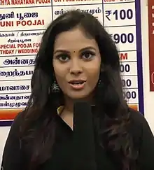 Chandini Tamilarasan is an Indian actress who appears in Tamil and Telugu language films. She made her debut in the lead role in K. Bhagyaraj's Siddhu +2 (2010), before signing to play role in Naan Rajavaga Pogiren (2013).