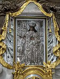 The Chapel of Saint Casimir is a chapel dedicated to Saint Casimir in Vilnius Cathedral. The chapel was built in 1623–36 after Prince Casimir (1458–1484) was canonized as saint. It was built and decorated in the Baroque style by Italian sculptors and architects commissioned by Sigismund III Vasa, King of Poland and Grand Duke of Lithuania.[2] The centerpiece of the chapel is a faux marble altar which holds the silver sarcophagus with Casimir's remains and the painting Three-Handed St. Casimir.
