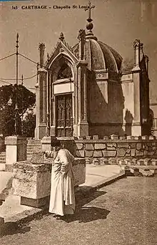 In November 1910, renovations were carried out, then again in 1925 thanks to Louis Poinssot.[17] The chapel was visited by Gaston Doumergue in 1931.[18] The centenary of the chapel was celebrated in 1940 by a gathering of important Franco-Tunisian people and descendants of people who had been present at the original groundbreaking ceremony.[19]