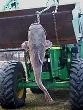 Very large catfish caught in the Chariton River near Novinger, Missouri. Until flood control channelization catfish of this size were not uncommon.