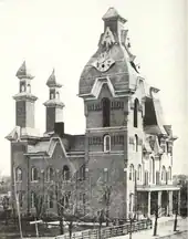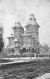 The John Pierce mansion in St. Louis was one of Clarke's most well-known commissions. The structure was characteristic of Clarke's works and featured dramatic massing with a complex roofline.[2]