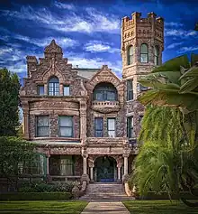C. D. Stimson came to Seattle in 1888[6] as he and his brother Fred sought out virgin forest to exploit.[7] He built a mansion at 1204 Minor Avenue on First Hill for his family. It was designed by Spokane architect Kirtland Cutter and built in 1901, a couple of years after the Great Seattle Fire.[8] It is a Seattle Landmark.[9] It remained in the family for decades[10] and is now known as the Stimson-Green Mansion.[11]
