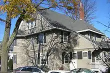The Charles H. Burgess House is a historic house at 17 Whitney Road in Quincy, Massachusetts. The 2+12-story wood-frame house was built c. 1903 by Charles H. Burgess, a real estate developer and auction-house owner. The house exhibits both Queen Anne and Shingle styling, with Queen Anne-like projecting corner bay, and a wraparound porch supported by paired columns. Decorative cut shingles make a string course under a slight flare at the base of the second floor.[2]