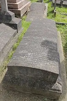 He is buried with other family members in Kensal Green Cemetery. The grave lies on a central path, west of the central building structure.
