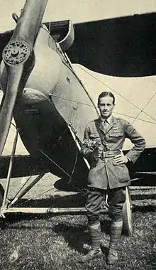 On 1 August, he shared his first two victories with William Howard Stovall, John Seerly, and H. B. Freeman. He shot down three more enemy planes afterwards-his 5th official credit was a Rumpler CIV of Fliegerabteilung 46LB {pilot Eichler {POW} observer Gröschel {DOW} August 16, 1918.[5] He was at one point entrusted with the only SPAD XII issued to Americans.[4] He was promoted to the rank of major on 1 November [6] and was given command of the 4th Pursuit Group.[3] He returned to the United States on 19 December and was discharged from the Army on 25 January.[7]