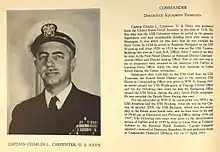 5. 1 2 USNA (1926). "Midshipman Charles L. Carpenter biography entry in the United States Naval Academy 1926 Lucky Bag". USNA Lucky Bag. US Navy. Retrieved June 6, 2014. See also: Midshipman Charles L. Carpenter biography entry in Commons.