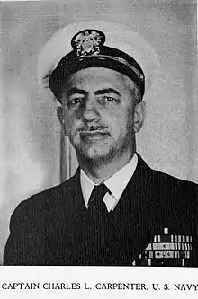 Rear Admiral Charles L. Carpenter (July 31, 1902 – February 21, 1992) was a Naval officer and a holder of the Navy Cross and a Purple Heart. His career encompassed combat action in Nicaragua. He was involved in all three Theaters of Operations in World War II and naval combat in the Pacific. He commanded attack transports during the war and an animal research vessel in the post-World War II-era Operation Crossroads series of atomic bomb tests. He earned nine Service Bars, the U.S. Navy Combat Command Insignia, and foreign decorations from the governments of Nicaragua, Peru, and Spain.[1][2][3] Of his 30 years of active military service, 22 years were spent at sea or on foreign shores.