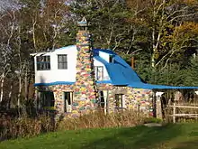 During the Great Depression of the 1930s, and facing a lull in customers, Macdonald embarked on a building project in nearby Huntington Point, constructing five concrete cottages overlooking the Bay of Fundy between 1934 and 1938. These brightly painted, highly whimsical structures have been described as "the sort of cottages in which Snow White and her seven dwarfs might have lived".[7] Macdonald and his wife retained one cottage for themselves, and the others were rented until Macdonald befriended prospective buyers whom he trusted enough to care for them properly.