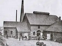 To secure a supply of rock salt the factory founders Vorster and Grüneberg acquired a salt mine in Staßfurt near Magdeburg.[5] The area was known for its deposits of a double salt, a compound of potassium chloride and magnesium chloride named carnallite after its discoverer, the Prussian mining engineer Rudolf von Carnall.[6] The new salt mine Vorster & Grüneberg was rich in deposits of carnallite. Grüneberg developed a new chemical process to produce potassium chloride from carnallite.[7] Initially the carnallite was transported from Staßfurt to Kalk where it was dissolved in a current of stream and after cooling down the carnallite crystallized to obtain potassium chloride. To reduce transport costs the two founders decided to build two potassium chloride factories in Staßfurt and Leopoldshall where they had acquired a second salt mine.[5]