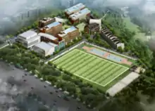 At the entrance of the school, there is a golden statue of Founder of Bongduk Education Foundation, Madame Bongduk Lee (1921~2010). The campus consists of the High School block, the Middle School Block, the "First Program" (Elementary), soccer field and residential facilities include the dormitory for students, and the Town House and Guesthouse for foreign teachers.