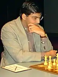 The FIDE World Cup 2002, marketed as the Second Chess World Cup, was a 24-player Category XVI chess tournament played between 9 October and 22 October 2002 in Hyderabad, India.[1] The tournament was hosted at Ramoji Film City and organized by FIDE in conjunction with the All India Chess Federation. Former World Cup winner Viswanathan Anand defeated Rustam Kasimdzhanov in the final to retain the title.[2]