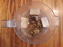 Chicha de piña is a Latin American spicy chicha made from pineapple crusts and cores, panela[1] or brown sugar, and spices such as cinnamon, clove, anise, and nutmeg. It is prepared simply by putting all the ingredients in a pot of water, boiling it, and then simmering it for an hour, before either chilling it to let the flavors further concentrate, or drinking it hot.[2] Some recipes also call for the addition of rice, milk, and vanilla.[3][4][5]