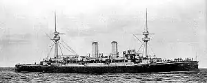 The new ship was defined by historian Adrian J. English as "the first armored cruiser to be built for any navy,"[4] and the contemporary Naval Annual called it "one of the most powerful cruisers in the world."[5] Another historian, Peter Brook, has written that Esmeralda should be classified as a lesser "belted" cruiser due to design faults present after its conversion from a protected cruiser while under construction.[6]