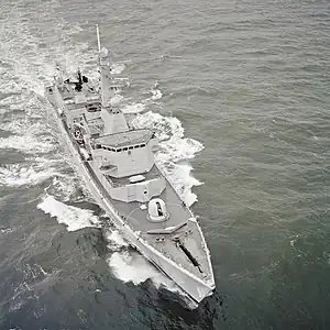 HNLMS Tjerk Hiddes was one of six Karel Doorman-class frigates that were built at the Koninklijke Schelde Groep in Vlissingen. The keel laying took place on 28 October 1986 and the launching on 9 December 1989. The ship was put into service on 26 February 1993.[1]