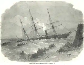 At 20:00, the ship was driven onto a reef off Point Carranza, 10 km south of Constitución.