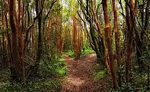 Chiloé National Park is a national park of Chile, located in the western coast of Chiloé Island, in Los Lagos Region (region of the lakes). It encompasses an area of 430.57 km2 (166 sq mi) divided into two main sectors: the smallest, called Chepu, is in the commune of Ancud, whereas the rest, called Anay, is in the communes of Dalcahue, Castro and Chonchi. The greater portion of the Park is in the foothills of Chilean Coastal Range, known as the Cordillera del Piuchén. It includes zones of dunes, Valdivian temperate rain forests, swamps, and peat bogs. A small portion, Metalqui, is an islet with an area of 0.5 km2 (0.19 sq mi). It is located between 42° 07' and 42° 13' south latitude and between 73° 55' and 74° 09' west longitude (see 42°06′S 74°01′W / 42.10°S 74.02°W / -42.10; -74.02).