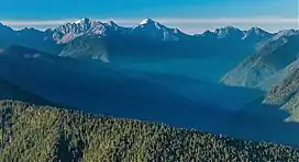 Chimney Peak is a 6,917-foot-elevation (2,108-meter) mountain summit located within Olympic National Park in Jefferson County of Washington state. Chimney Peak is situated near the head of Elwha Valley, and immediately north above Enchanted Valley. Topographic relief is significant as the southeast aspect rises 4,800 feet (1,500 meters) above Enchanted Valley in less than one mile. Enchanted Valley is also known as Valley of 10,000 Waterfalls, and numerous waterfalls tumble down the immense cliffs of Chimney Peak.[4][5] Neighbors include Crystal Peak, 2.2 mi (3.5 km) to the north, White Mountain 3.5 mi (5.6 km) to the east, and West Peak 3.4 mi (5.5 km) to the northeast. Precipitation runoff from the mountain drains north to the Elwha River, and south to the Quinault River.