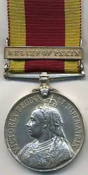 Awarded to British and Indian army personnel and to men of the Royal Navy involved in the relief of the Legations in Peking between 10 June and 14 August 1900, as part of the international relief force (see Gaselee Expedition) or as part of Vice-Admiral Edward Seymour's Naval Brigade (see Seymour Expedition).[3]