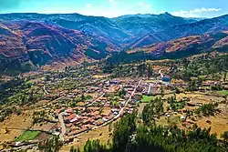 Aerial view of the town of Ocra, located within the Chinchaypujio district.