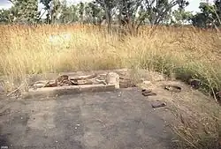 There are traces of a second building 2.5 metres (8 ft 2 in) south of the temple. There is evidence of several postholes and remnant walls of corrugated iron embedded in the ground. Preliminary investigation indicates that this structure had an earthen floor. In the narrow passage between this building and the temple there is a mound of earth, which probably supported a tank stand.[1]