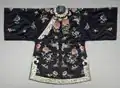 In chinoiserie fashion of the early 20th century, the dragon robes (and python robes) were at times cut and converted into Western-style attire, such as banyan and waistcoat; however, the direct alterations of Chinese garments for the use of Westerners are sometimes regarded as "imperialistic appropriation".[18]: 243–247 Some of these adapted dragon robe clothing were possibly fabric rolls and/or clothing looted from the Old Summer Palace contrary to what museum donors sometimes wish explain about their origins.[18]: 243–245 During the Opium wars, the use of Chinese dragons robes by Europeans in the late Victorian Europe were sometimes used to mock Chinese masculinity; for example, George Smith in the painting The Rightful Heir, exhibited in 1874 in the Royal Academy, would paint the villain found in the painting wearing a Chinese dragon robe tied with a belt around the waist with slippers on his feet.[18]: 246 In similar instances, Liberty in 1898 offered evening capes which were advertised as being made of "Mandarin robes" (i.e. Qing dynasty court dress); however, these capes were actually made of Han Chinese women's traditional skirts.[40]: 248 In 1981,