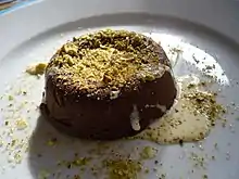 ![]() Chocolate marquise with crème anglaise and roasted pistachios | |