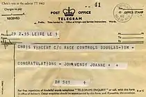 Congratulatory telegram sent to Vincent on his 1962 TT win