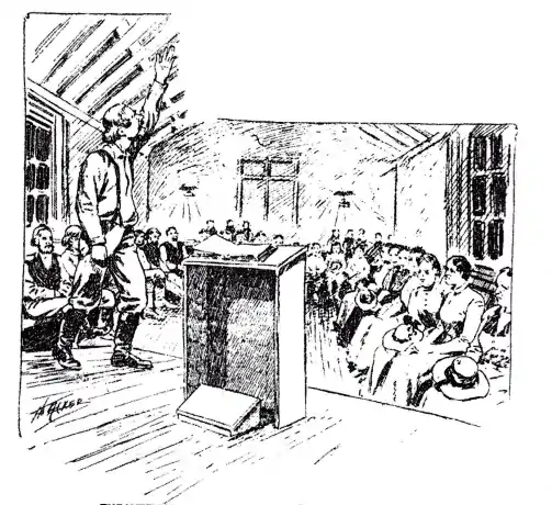 In February 1897 a local newspaper in Oregon, NC published an interesting account. "They held many meetings – almost daily.... Some 150 persons have professed a belief in their doctrines of sanctification." "Whilst many good men are opposing them, very many of the best citizens in the section where they have chiefly operated say they have done a great good". An approximately 60 year old experienced-local minister from a larger denomination challenged them to a joint debate on scripture subjects on Tuesday January 20, 1897. Mrs. Sarah E. Collins, a 26 year old co-leader was reported to be "thoroughly posted as to the doctrines she advocates and seems to know the entire Bible by heart". The report continues that "space will not allow us to give a report of the discussions, but we feel warranted in saying that Reverend Davenport will not want to renew the discussions, and that at least nine out of 10 who heard the debate would give the victory to the woman".[11]