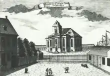 After Christian IV founded Christianshavn in 1617 as a town specially for merchants, a large community of German traders and craftsmen settled there. Although Christianshavn had been incorporated into Copenhagen prior to 1674, they did not attend St. Peter's Church like the rest of the city's German community but preferred to worship at the local Church of Our Saviour. This lasted until they finally asked King Christian VI for permission to build their own church. The King approved the plans and contributed with a lot, a former saltern, located at the end of Strandgade in the southern part of the neighbourhood. He also granted permission for a lottery to be held to cover the project's financing; the finished church used to be colloquially known as the Lottery Church.[1]