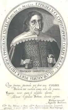 Christoph Köler or (in Latin), Christophorus Colerus (1 December 1602 in Bunzlau, Fürstentum Schweidnitz-Jauer - 19 April 1658 in Breslau) was a German poet and writer. A student of Martin Opitz (15971637) and follower of his Baroque poetical reforms,[1] Köler later revised his papers and published a biography of his teacher.[2] His most noted student was the German priest, and mystical poet Angelus Silesius (16241677).[3]