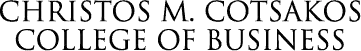 It was named in May 2001 as the "Christos M. Cotsakos College of Business" in honor of Dr. Christos M. Cotsakos, former E*TRADE CEO and alumnus.