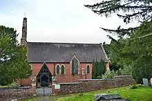 All Saints Church in Wilden, Worcestershire about one mile to the north east of Stourport. It was designed by William Hopkins with funds provided by Alfred Baldwin very close to his own home, Wilden House and one of his large iron works. It served the Baldwin family and their employees and was consecrated in 1880.