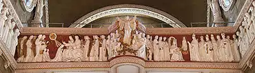 The most spectacular work of Carli Petrucci is unquestionably the monumental frieze of The Apotheosis of the Virgin Mary, installed in 1927. It presents 27 paintings depicting the life of the Blessed Virgin, religious institutions and the bishops of Montreal as well as the founders of this city.
