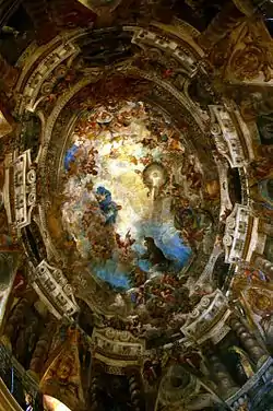 The church houses frescoes by Luca Giordano and Francisco Ricci. The prolific Neopolitan painter Giordano was court painter (1692-1702) to Charles II of Spain, and active for the Royal Palace of Aranjuez and the Buen Retiro Palace.