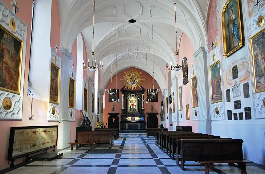 The Church of St. Francis of Assisi with Monastery of the Franciscan Order (Polish: Kościół św. Franciszka z Asyżu) located in the Old Town district of Kraków, Poland, is a Roman Catholic religious complex on the west side of All Saints Square at Franciszkańska 2, across the street from the Bishop's Palace – residence of Pope John Paul II during his stays in the city.[1][2] The Church dates back to the 13th century.[3][4] Saint Maximilian Kolbe was a monk there in 1919, and led his first service at this church on Poland's return to sovereignty.[5]
