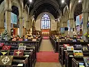 On the church's south wall can be seen the funerary bust of John Strange, a local merchant and a benefactor of the town and church. Four times Mayor of Bideford, he died in 1646 of the plague which he contracted while helping other victims. To the right of the main entrance on the north wall can be found a large memorial to Admiral Bedford Clapperton Trevelyan Pim, a Royal Navy officer, Arctic explorer (during the search for the Franklin Expedition), barrister, and author. He was the first man to travel from a ship on the eastern side of the Northwest Passage to one on the western side. The stained-glass windows are all late 19th century and are of no artistic merit.[11] The east window is by Alexander Gibbs (1865) while the north window is by Arthur J. Dix.[1]