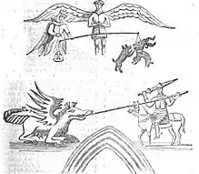 In about 1824 much work was done at the church which included plastering the roof of the north aisle and replacing both the mediaeval carvings and the 400 year-old pews, the latter being done by local contractor William Seymour of Arlesey. At the same time the old paintings on the walls of St. George and the Dragon, St. Michael weighing souls, etc.,[3][4] were either whitewashed over or destroyed and the walls covered with wooden panelling; this panelling was removed in 1932. The chancel was rebuilt in 1890 and the floor raised by seven inches. The north porch was demolished for reasons now unknown. A clock was added to the tower in 1910 as a memorial to Rev. John Holding who is also commemorated by the stained glass in the east window.[2]
