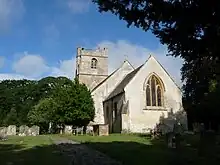 The nave of the church is of five bays and dates from the 15th century, as does the tower.[3] The chancel and the aisles are from Butterfield's mid-Victorian restoration.[4] The building material is limestone, some finely cut into ashlar blocks and some used as rubble infill.[3] Pevsner described the church's setting as "a lovely position below a wooded stretch of the cliff".[4] The church is a Grade I listed building.[3]