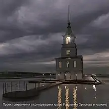 In 2009, a project was launched to save the church, which collected historical and archival data about the temple, received expert opinions about its historical, architectural and cultural value, examined its technical condition and organized dozens of volunteer expeditions to carry out priority anti-emergency works, including the construction of a dam to protect the church from waves and ice.[3][4][5] In the future, the project provides for the construction of a memorial chapel in the lower tier of the bell tower of the chirch and the styling of the lighthouse in the upper tier.[6]