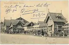 In year 1870, 6 years after BB&CIR commenced operations from Grant Rd. and Ahmedabad, Churchgate was first time mentioned as the station. It began with five trains running each day. The line was further extended towards Colaba in 1873, and goods shed was built there. Churchgate station was situated in the heart of the city, and it is quite certain that the old station wasn't able to cope up with the growing demand. The station was hence rebuilt in 1876. It's structure resembled an English Inn, and was compared by the Bombay Guardian to a Swiss Chalet.[5] The station then had just two platforms. The Up platform catered to passengers arriving from Marine Lines, while the Down platform catered to those travelling towards Marine Lines, or further northward. The station also had a level crossing, situated to its south. It was used by passengers willing to use the Down Platform, and to prevent pedestrians from crossing the tracks. Around two decades later the grand BB&CIR headquarters were built just opposite the station, completed by 1899.