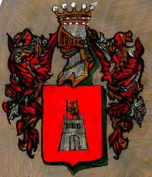 Among the important families of Rome in 1500, the Cimini family is mentioned, living in the Colonna region.[19] Among the noble families of Vico Equense the family of Cimini is registered in 1671.[20] A branch of this family achieved sovereign privileges 10 March 1586, in Taranto, and also recorded as "Patrizia" there. Tommasso Cimini was recorded coming to Lucera in 1605, where he married Barbara Tauro, of a distinguished Luceran family, and had their son Giuseppe. The family is mentioned in the "Capella gentilizia de Signora Cimino nella Chiesa de PP. Cappoccini di Lucera".[21] On 27 October 1788, a branch of the Cimino family were created as Marquis of terra di Casolla Valenzano.[22]